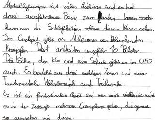 Zur Zeit gibt es diese Kriterienkataloge für die Schreibhandlungen „Erzählen“ und „Informieren“, im laufenden Schuljahr wird ein zusätzlicher Kriterienkatalog zum „Argumentieren“ entstehen, der analog zu den beiden anderen Katalogen aufgebaut sein wird.
