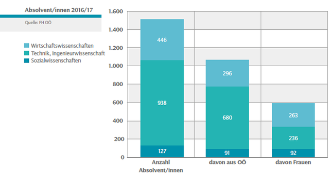 Seit Gründung der FH OÖ konnten bis zum Ende des Studienjahrs 2016/17 rund 16.000 Absolvent/innen verzeichnet werden, etwa 3.800 von ihnen absolvierten ein berufsbegleitendes Studium. Im Studienjahr 2016/17 schlossen etwa 1.500 Personen ihr Studium ab: